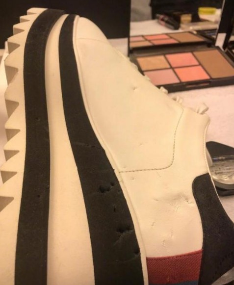 12月17日晚,李宇春通过微博曝鞋被小狗撕烂的照片,并无奈向网友求解,称:“如图,已知:(1)活动前一小时(2)一双鞋(3)被咬烂了!求解? ”照片中,小狗嘴里叼着布条娃娃,躺在地上,看上去非常的悠闲,另外一张,一双白色鞋鞋底被咬的全是洞。
